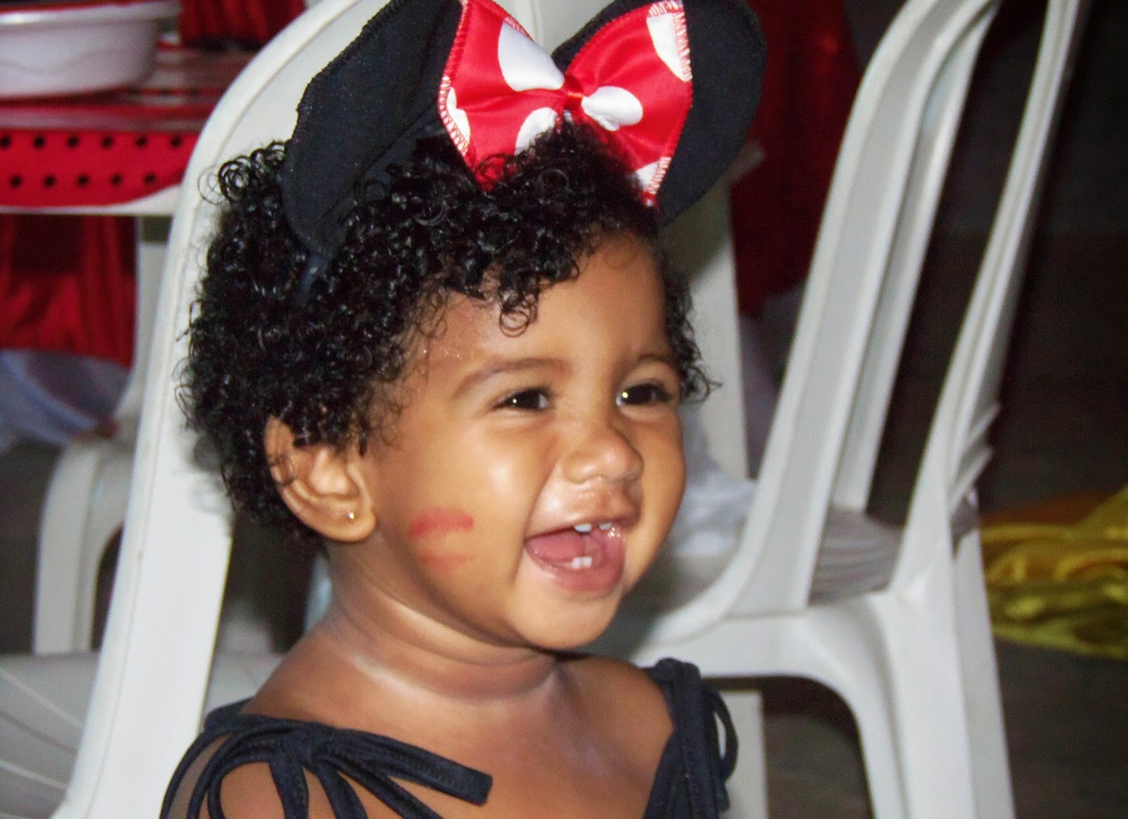 Minha vó veio ve-la quando ela estava com 2 meses e disse que o cabelo dela ia ser cheio e crespo, ate ai tudo bem.